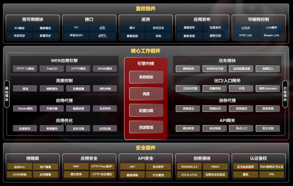 OpenNJet應用引擎是面向互聯(lián)網和云原生應用提供的運行時組態(tài)服務程序。具備環(huán)境感知、安全控制、加速優(yōu)化等能力,可利用動態(tài)加載機制實現(xiàn)不同的產品形態(tài),如API網關、消息代理、入口/出口控制器、邊車、負載均衡和WAF等。
