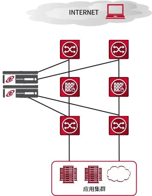 在上圖的組網(wǎng)結(jié)構(gòu)中,我們可以直觀看到,leyu.樂魚通明湖應(yīng)用交付控制器設(shè)備可以很容易的接入在現(xiàn)有網(wǎng)絡(luò)環(huán)境中,無需對原有網(wǎng)絡(luò)配置做任何改動,只需在leyu.樂魚通明湖應(yīng)用交付控制器設(shè)備與核心交換機間配置相應(yīng)的端口、VLAN及IP地址就可以完成設(shè)備互連,即可實現(xiàn)相關(guān)負(fù)載均衡技術(shù),同時可以在接入交換機或核心交換機上對服務(wù)器進(jìn)行橫向擴(kuò)展。