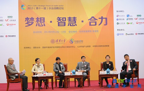 (從左至右分別是:E20環(huán)境產(chǎn)業(yè)人力資源聯(lián)盟秘書長(zhǎng)成衛(wèi)東、GE水處理及工藝過(guò)程處理大中華區(qū)人力資源經(jīng)理丁愛華、桑德集團(tuán)人力資源部總經(jīng)理蔡蘭麗、碧水源科技人力資源總監(jiān)鄭廣峰、博天環(huán)境副總經(jīng)理蔣瑋、中持環(huán)保人力資源總監(jiān)李彩斌)