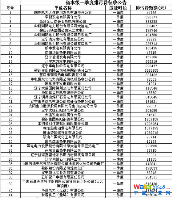 核心提示:近日,遼寧省環(huán)保廳在官方網(wǎng)站上公布了遼寧省省一季度省本級排污費的征收公告,本次排污費征收共涉及省內(nèi)的43家企業(yè),排污費征收總額為1771萬余元,其中,鞍鋼的鲅魚圈鋼鐵分公司需繳納的排污費數(shù)額最大為363萬余元。