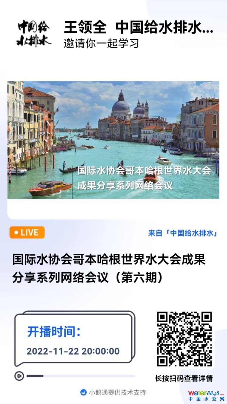 國際水協(xié)會哥本哈根世界水大會成果分享系列網(wǎng)絡(luò)會議(第六期) 直播時間:2022年11月22日 20:00—22:00