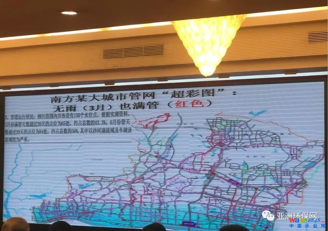 據(jù)他提供的南方某大城市管網(wǎng)運(yùn)行超彩圖顯示,納污范圍內(nèi)共布設(shè)有150個(gè)水位點(diǎn),在雨少季的3月份,滿管天數(shù)超過20天的點(diǎn)位為65處,約占總數(shù)的43.3%,而在6月份,滿管天數(shù)超過20天的點(diǎn)位數(shù)則更多,為84處,約占總數(shù)的56%。