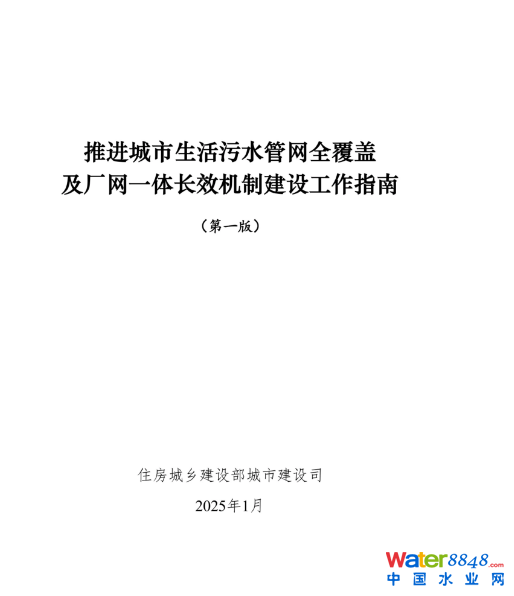 建司局函城[2025]03號(hào) 住房城鄉(xiāng)建設(shè)部城市建設(shè)司關(guān)于印發(fā)《推進(jìn)城市生活污水管網(wǎng)全覆蓋及廠網(wǎng)一體長效機(jī)制建設(shè)工作指南(第一版)》的通知 各省、自治區(qū)住房城鄉(xiāng)建設(shè)廳,北京、天津、上海市水務(wù)局,重慶市