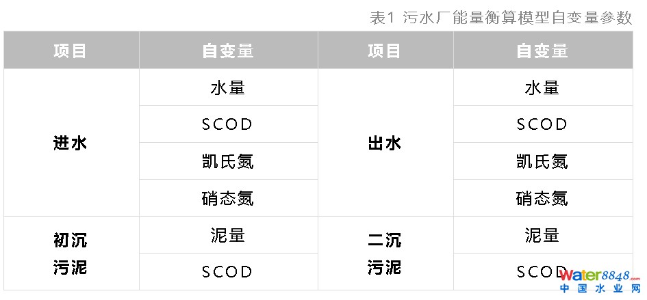 圖3 污水廠能量衡算模型自變量參數(shù)