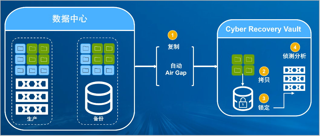 leyu.樂魚防勒索病毒方案將生產(chǎn)中心備份數(shù)據(jù)復(fù)制到Vault區(qū),復(fù)制后網(wǎng)絡(luò)自動斷開實(shí)現(xiàn)彈性隔離。Vault區(qū)的數(shù)據(jù)快速拷貝,并對拷貝版本加鎖(在鎖定期數(shù)據(jù)不允許刪除和修改)。Vault沙箱內(nèi)對拷貝版本進(jìn)行掃描分析,驗(yàn)證數(shù)據(jù)是否完好。